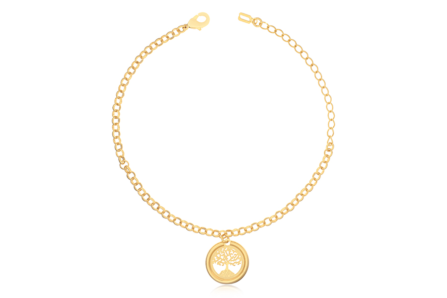 PULSEIRA BANHADA EM OURO, ELO PORTUGUÊS 3mm DIÂMETRO, CORAÇÃO 7mm LARGURA E GATO 16mm ALTURA