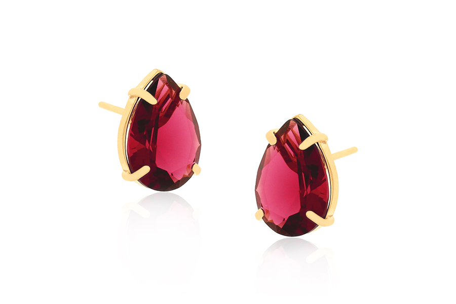 BRINCO BANHADO EM OURO, CRISTAL GOTA 21x7mm E ARGOLA 18,50mm DIÂMETRO COM CANALETA