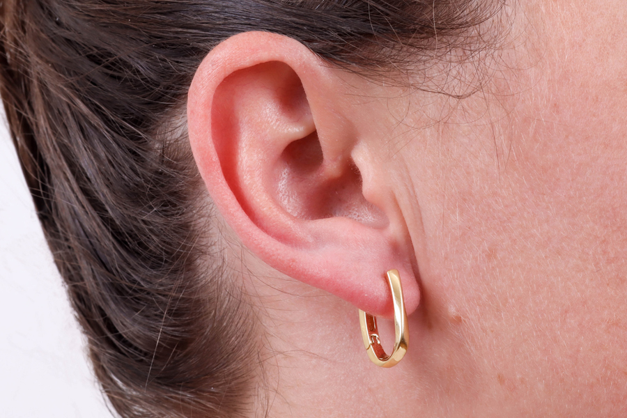 BRINCO BANHADO EM OURO, 22mm DE ALTURA E 9mm DE LARGURA