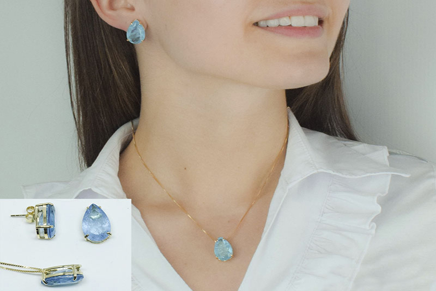 CONJUNTO BANHADO EM OURO, FUSION GOTA 12X18mm BRINCO E GARAGANTILHA