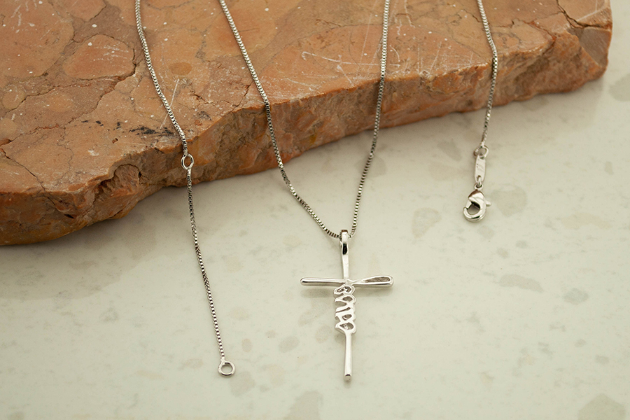 GARGANTILHA BANHADA EM RÓDIO BRANCO, ELO 1,50mm LARGURA, OLHO GREGO, 80cm COMPRIMENTO E EXTENSOR 5cm COMPRIMENTO