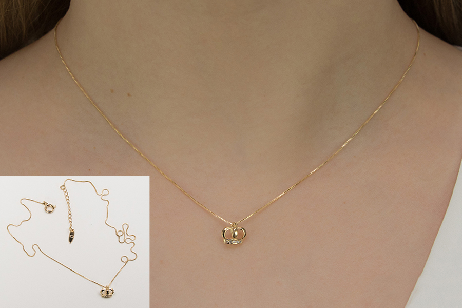 GARGANTILHA BANHADA EM OURO, CRISTAL OVAL 9x7mm, RABO DE RATO 1mm, 40cm COMPRIMENTO E EXTENSOR 10cm COMPRIMENTO