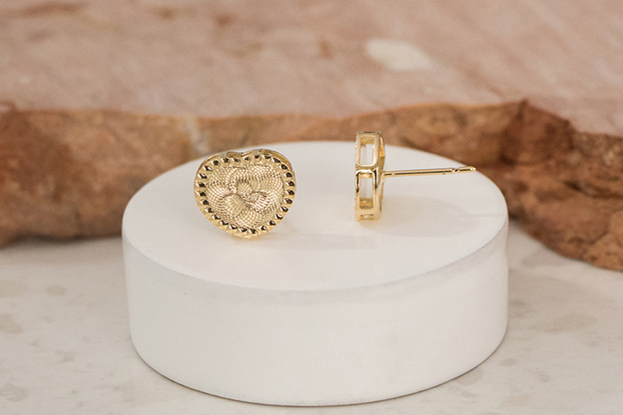 BRINCO BANHADO EM OURO, CORAÇÃO 21mm LARGURA, LISO OU ACETINADO