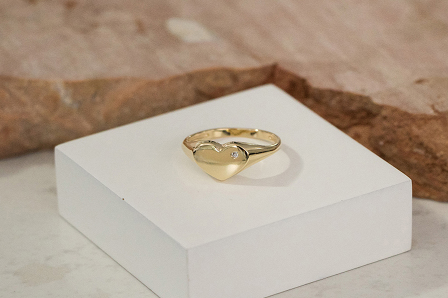 ANEL BANHADO EM OURO CORAÇÃO 15mm ALTURA
