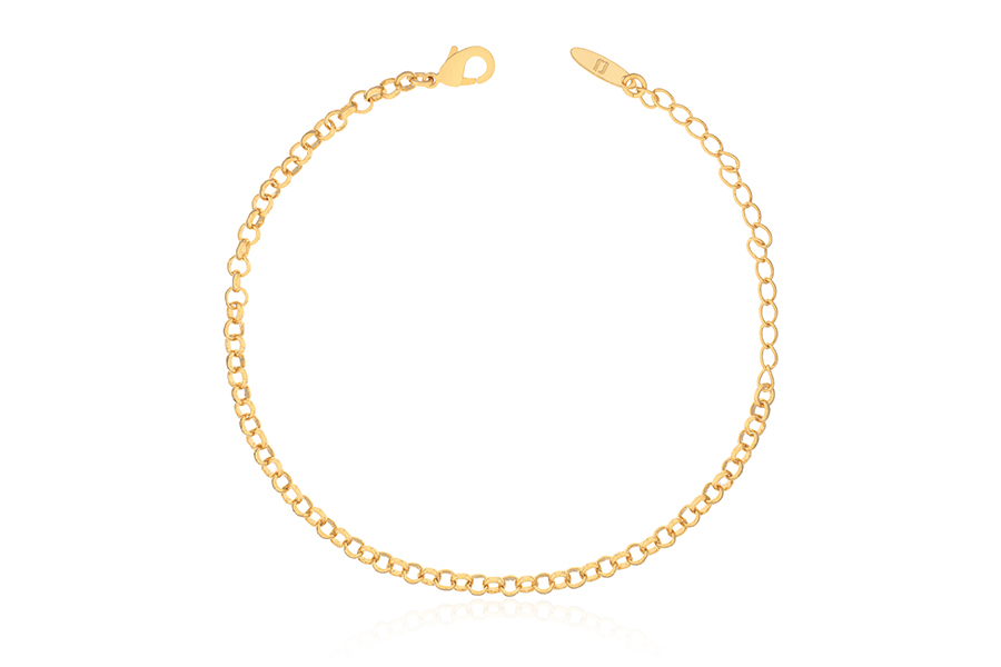 PULSEIRA INFANTIL BANHADA EM OURO, ELO DUPLO 1,80mm E CARTIER 3,50x1,90mm, 15cm COMPRIMENTO, CORAÇÃO, ANJO E CHAVE