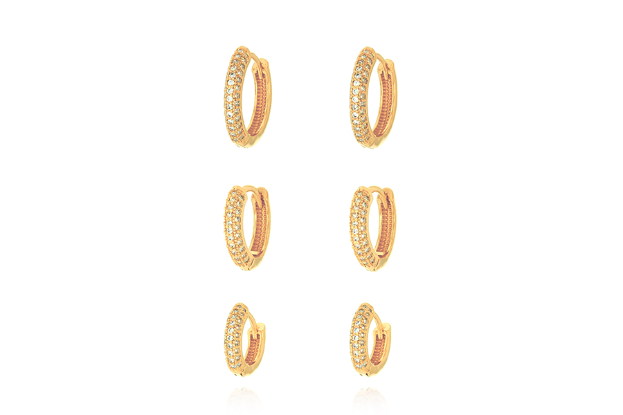 BRINCO BANHADO EM OURO, 22mm DE ALTURA E 9mm DE LARGURA