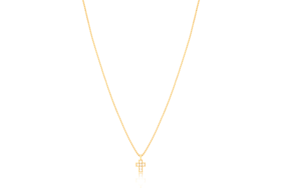 GARGANTILHA BANHADA EM OURO, VENEZIANA 1,50mm ESPESSURA, 45cm COMPRIMENTO E NOSSA SENHORA APARECIDA 30X21mm