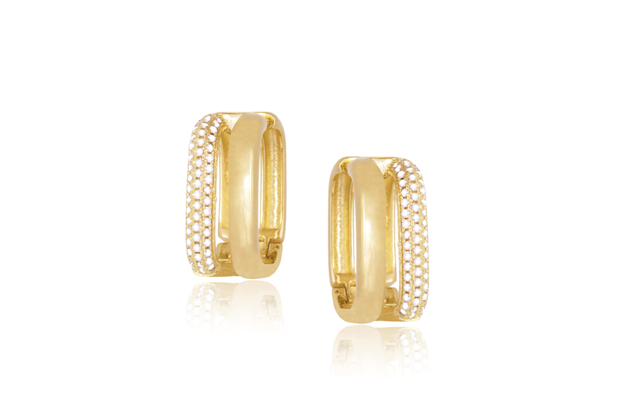 BRINCO BANHADO EM OURO, CRISTAL FUSION RETANGULAR 10x8mm