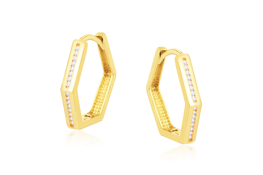 BRINCO BANHADO EM OURO, 22mm DE ALTURA E 9mm DE LARGURA