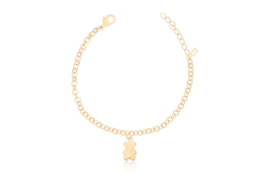 PULSEIRA INFANTIL BANHADA EM OURO, ELO DUPLO 1,80mm E CARTIER 3,50x1,90mm, 15cm COMPRIMENTO, CORAÇÃO, ANJO E CHAVE