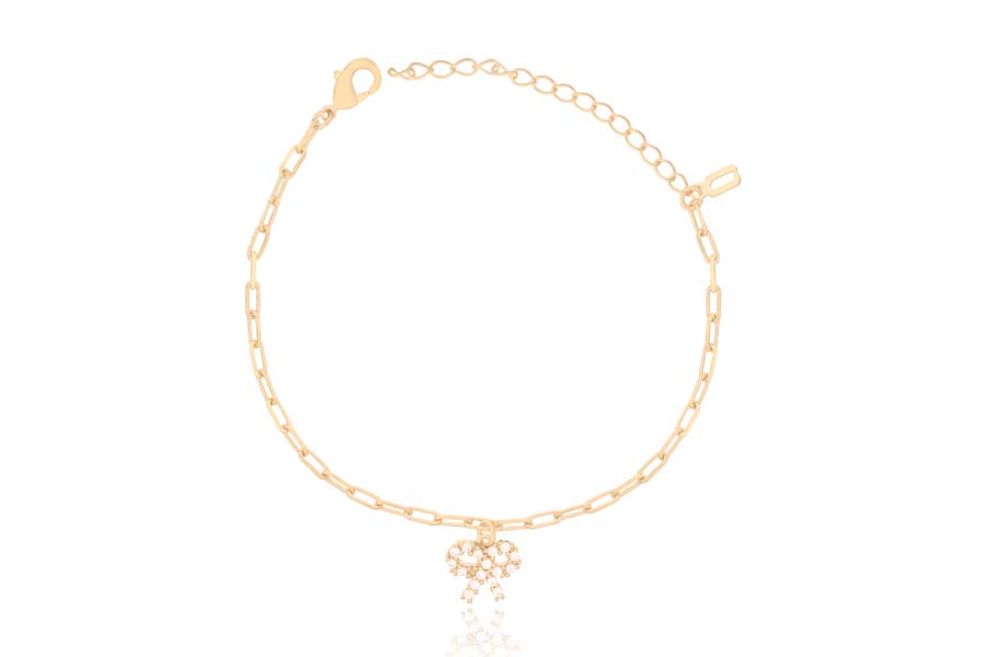 PULSEIRA INFANTIL BANHADA EM OURO, ELO DUPLO 1,80mm E CARTIER 3,50x1,90mm, 15cm COMPRIMENTO, CORAÇÃO, ANJO E CHAVE