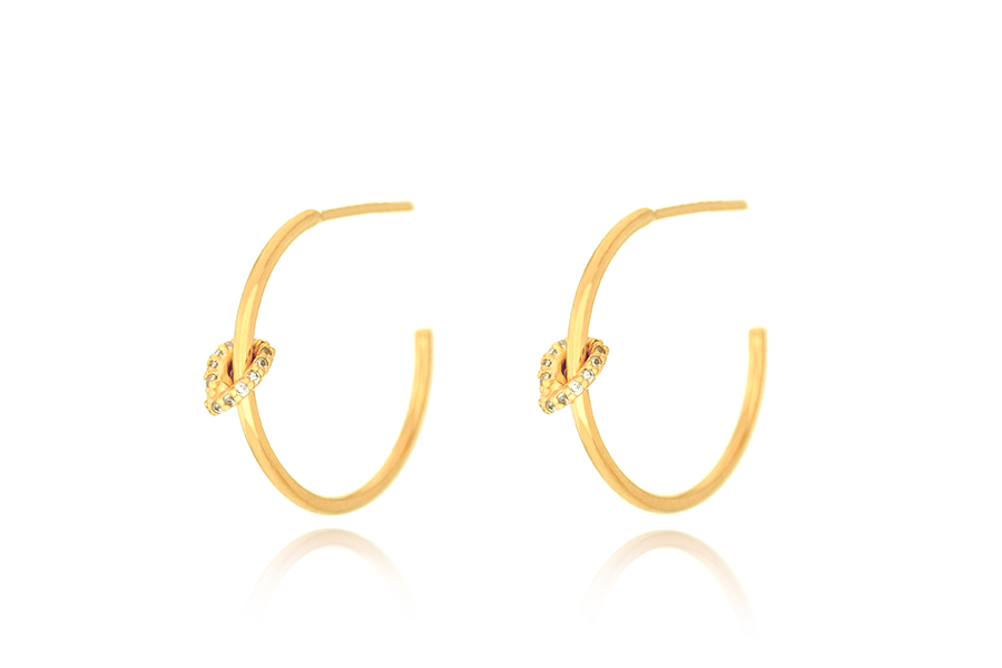 BRINCO BANHADO EM OURO, ARGOLA 2,50mm DIÂMETRO E NÓ COM ZIRCÔNIA