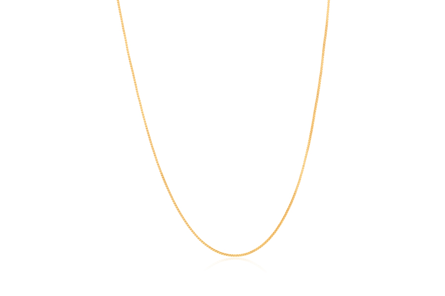 CORRENTE BANHADA EM OURO, ELO VENEZIANA 0,80mm, 45cm COMPRIMENTO, EXTENSOR 5cm E PESO 2,20g