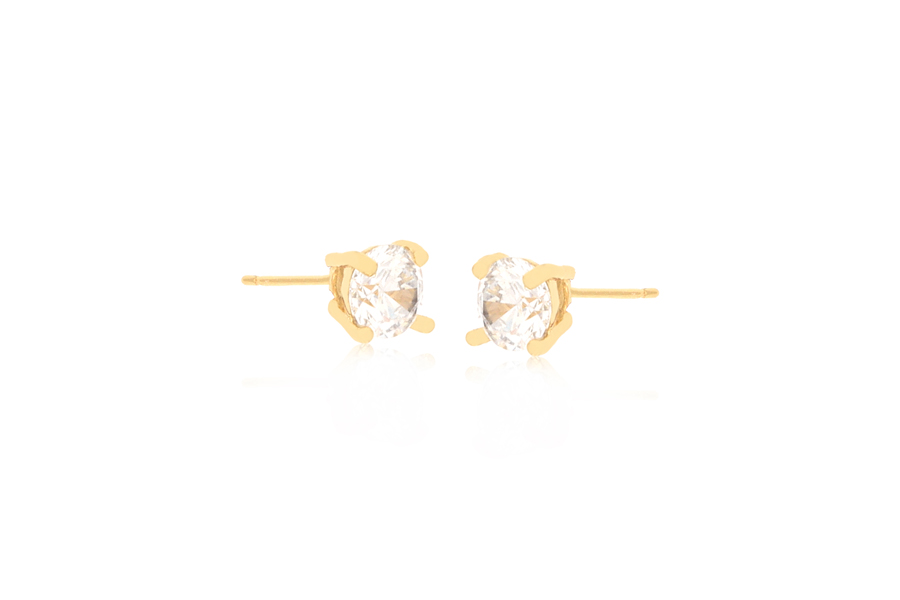 BRINCO BANHADO EM RÓDIO BRANCO, PONTO DE LUZ 4mm, CRAVAÇÃO INGLESA