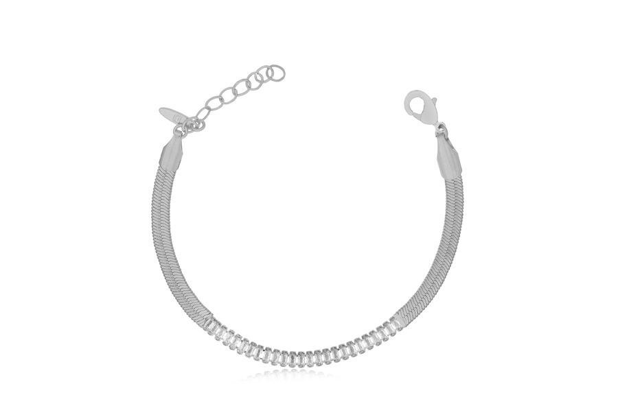 PULSEIRA BANHADA EM RÓDIO BRANCO, TRIPLA, 15cm COMPRIMENTO, EXTENSOR 5cm COMPRIMENTO E CORAÇÃO 14mm ALTURA