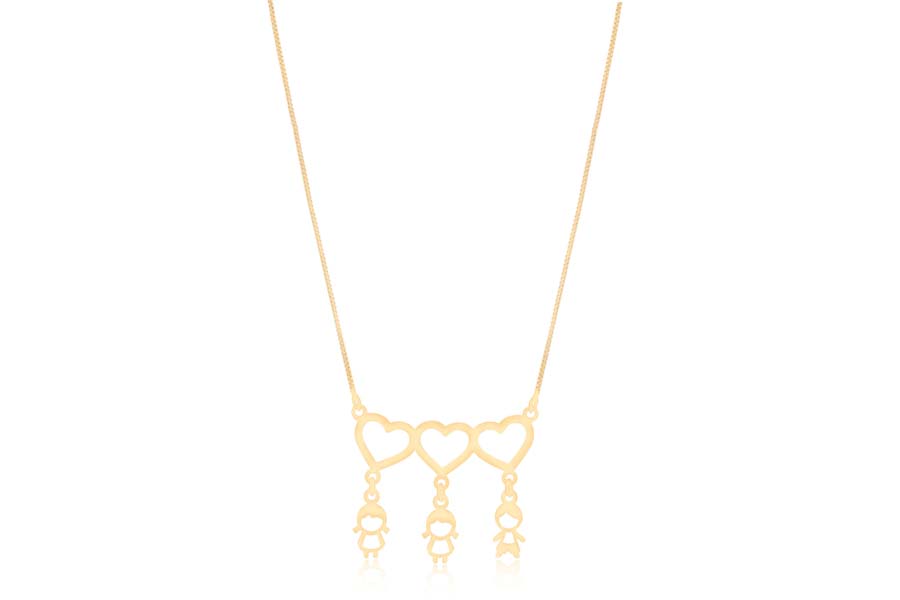 GARGANTILHA BANHADA EM OURO, ELO VENEZIANA 0,80mm, 40cm COMPRIMENTO, EXTENSOR 10cm, CANGA COM 2 MENINAS E 1 MENINO