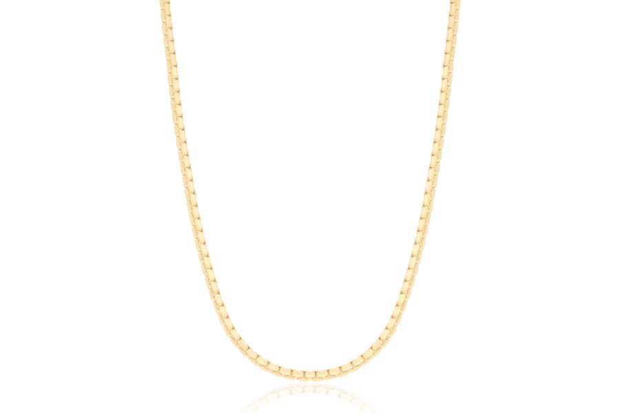 CORRENTE BANHADA EM OURO, ELO CORDA 3mm, 45cm COMPRIMENTO, EXTENSOR 5cm COMPRIMENTO E PESO 12,20g