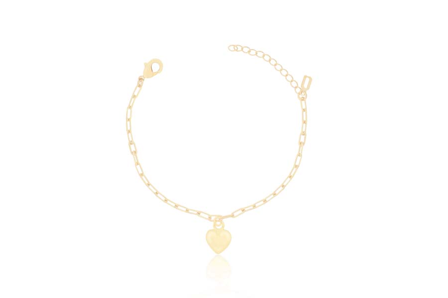 PULSEIRA BANHADA EM OURO, ELO PORTUGUÊS 3mm DIÂMETRO, CORAÇÃO 7mm LARGURA E GATO 16mm ALTURA