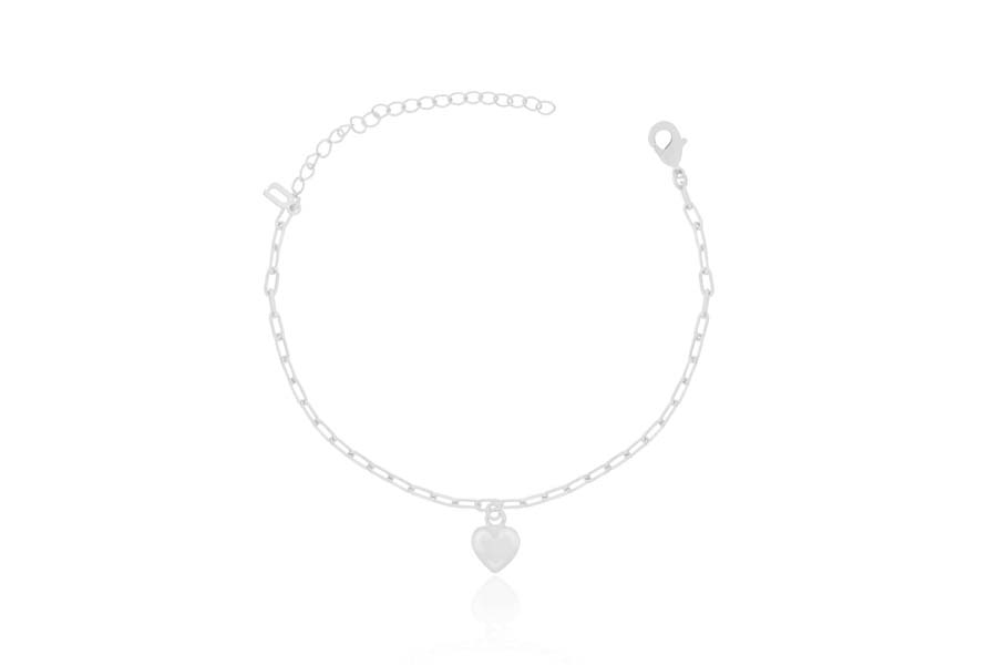 PULSEIRA BANHADA EM RÓDIO BRANCO, TRIPLA, 15cm COMPRIMENTO, EXTENSOR 5cm COMPRIMENTO E CORAÇÃO 14mm ALTURA