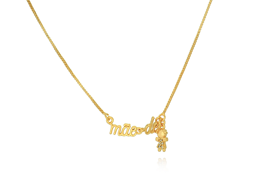 GARGANTILHA BANHADA EM OURO, VENEZIANA 1,50mm ESPESSURA, 45cm COMPRIMENTO E NOSSA SENHORA APARECIDA 30X21mm