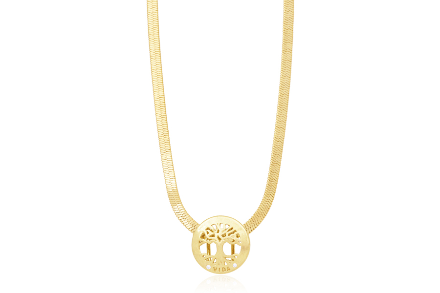 GARGANTILHA BANHADA EM OURO, ELO LACRAIA LAMINADA 2mm, 40cm COMPRIMENTO, EXTENSOR 10cm E ÁRVORE DA VIDA 12mm DIÂMETRO