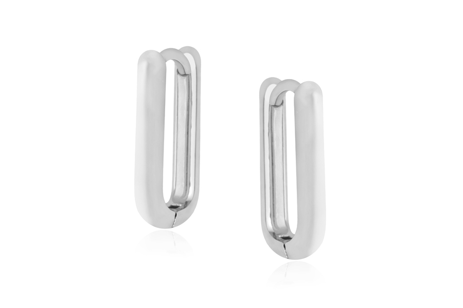 BRINCO BANHADO EM PRATA LEVE, ARGOLINHA RETANGULAR 15x9mm