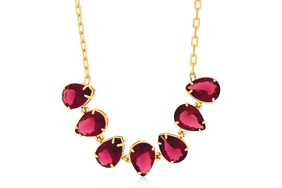 GARGANTILHA BANHADA EM OURO, ELO 2,40mm LARGURA, 80cm COMPRIMENTO, ZIRCÔNIAS QUADRADA E GOTA COLORIDAS
