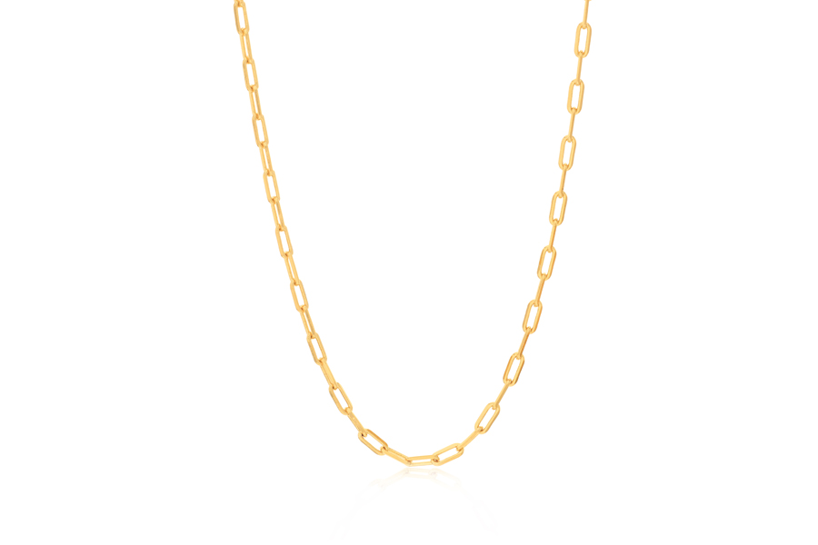 CORRENTE BANHADA EM OURO, ELO CORDA 3mm, 45cm COMPRIMENTO, EXTENSOR 5cm COMPRIMENTO E PESO 12,20g