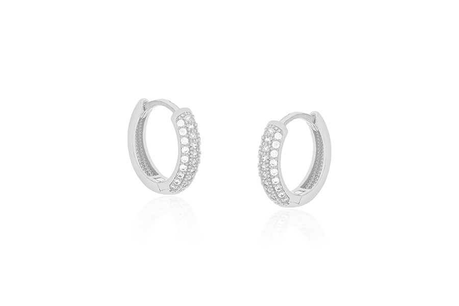 BRINCO BANHADO EM RÓDIO BRANCO, 13mm DIÂMETRO, 6,40mm LARGURA COM 7 ZIRCÔNIAS