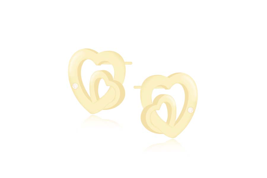 BRINCO BANHADO EM OURO, CORAÇÃO 21mm LARGURA, LISO OU ACETINADO