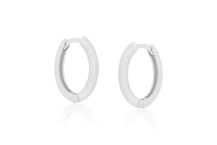 BRINCO EM PRATA, CORAÇÃO 10mm LARGURA, COM BANHO DE RÓDIO BRANCO, COLEÇÃO AURA