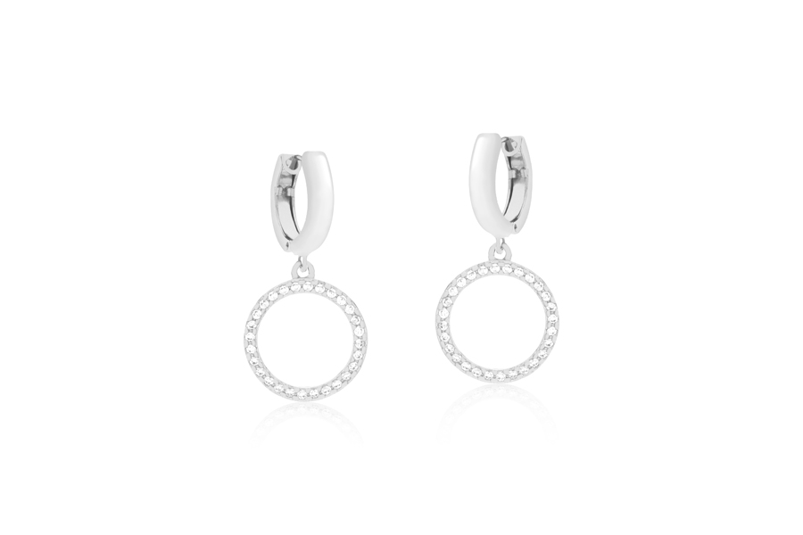 BRINCO BANHADO EM RÓDIO BRANCO, 13mm DIÂMETRO, 6,40mm LARGURA COM 7 ZIRCÔNIAS