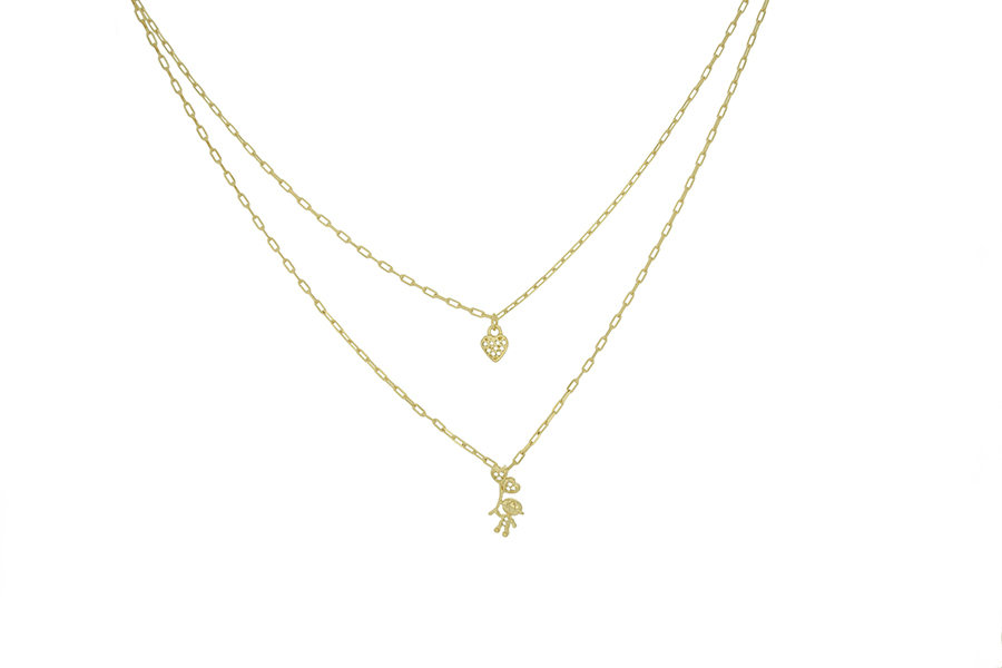 GARGANTILHA BANHADA EM PRATA LEVE, ELO VENEZIANA 0,80mm, 43cm COMPRIMENTO, EXTENSOR 5cm COMPRIMENTO, DOIS CORAÇÕES, LISO OU ACETINADO
