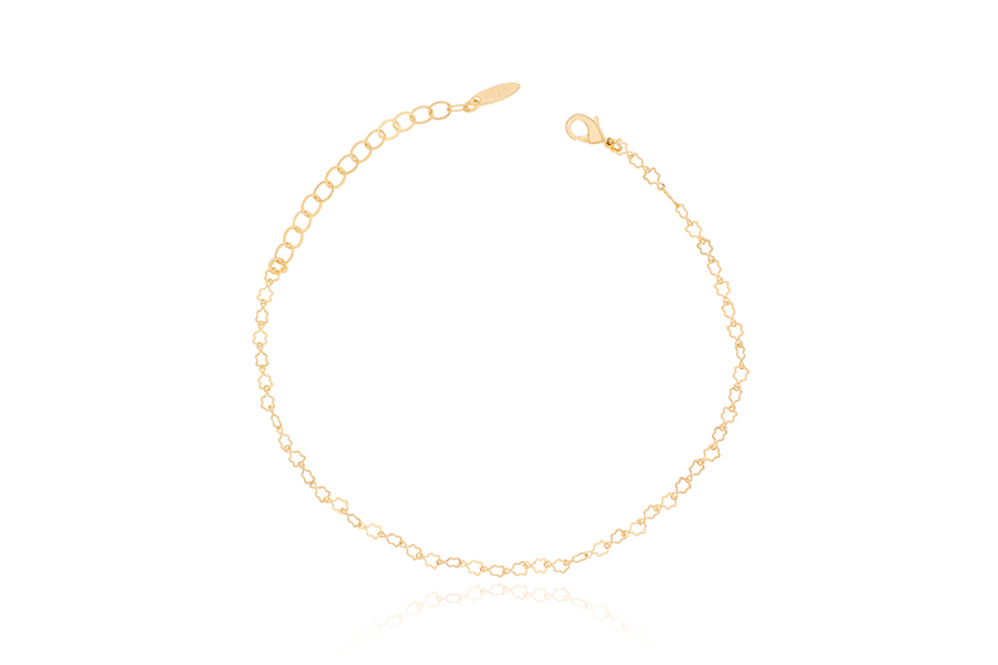 TORNOZELEIRA BANHADA EM OURO, CORRENTE ELO 3mm LARGURA, 22cm COMPRIMENTO