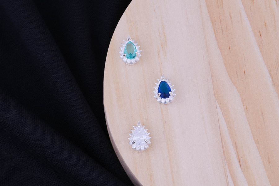 PINGENTE EM PRATA, ZIRCÔNIA GOTA COM BORDAS CRAVEJADAS, 10mm ALTURA