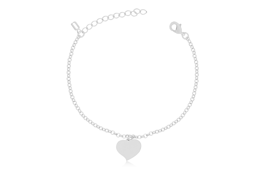 PULSEIRA BANHADA EM RÓDIO BRANCO, TRIPLA, 15cm COMPRIMENTO, EXTENSOR 5cm COMPRIMENTO E CORAÇÃO 14mm ALTURA