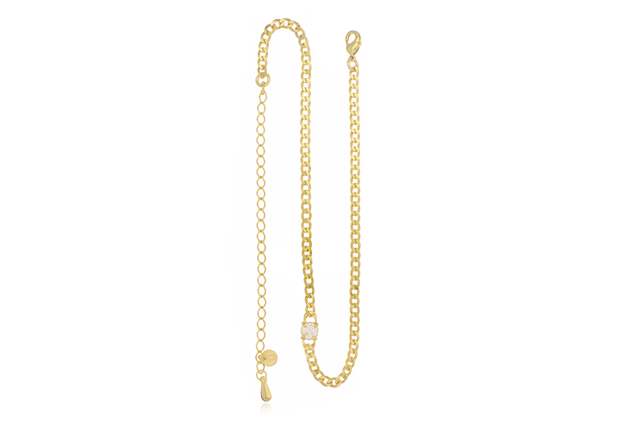 GARGANTILHA BANHADA EM OURO, CRISTAL OVAL 9x7mm, RABO DE RATO 1mm, 40cm COMPRIMENTO E EXTENSOR 10cm COMPRIMENTO