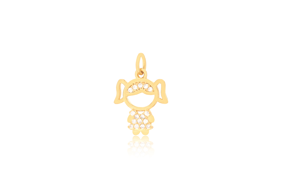 PINGENTE BANHADO EM OURO, MENINA, 15mm ALTURA COM 16 ZIRCÔNIAS