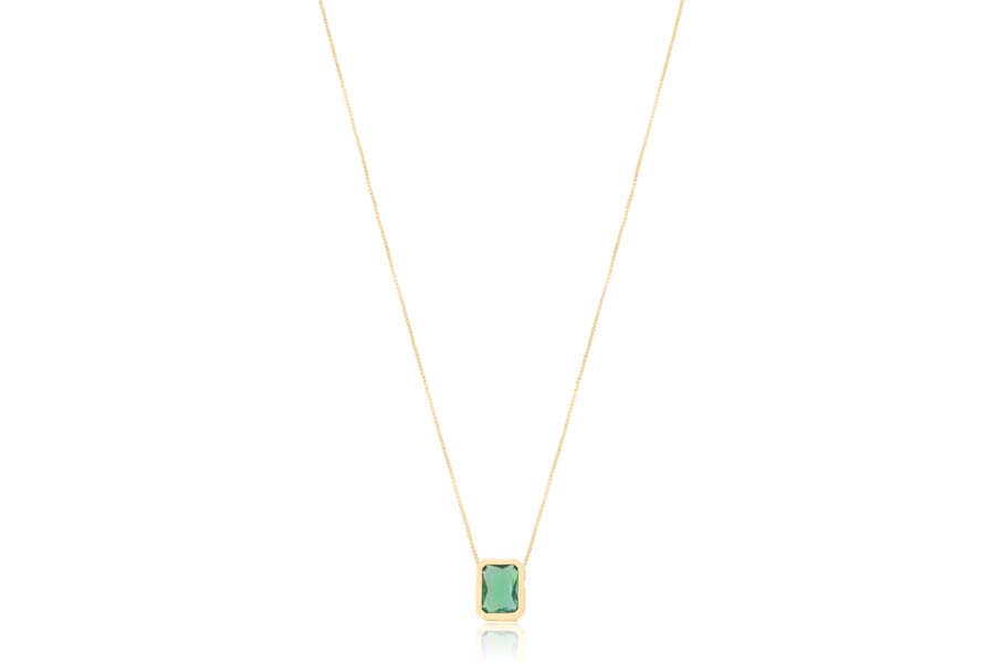 GARGANTILHA BANHADA EM OURO, CRISTAL, ELO VENEZIANA 0,60mm, 40cm COMPRIMENTO, EXTENSOR 5cm E PINGENTE RETANGULAR PEDRA 6x8mm, PARA QUALQUER COR DE PEDRA