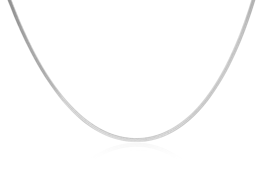 CORRENTE BANHADA EM PRATA LEVE, ELO LACRAIA LAMINADA 3mm, 43cm DE COMPRIMENTO, EXTENSOR 5cm COMPRIMENTO E PESO 6g