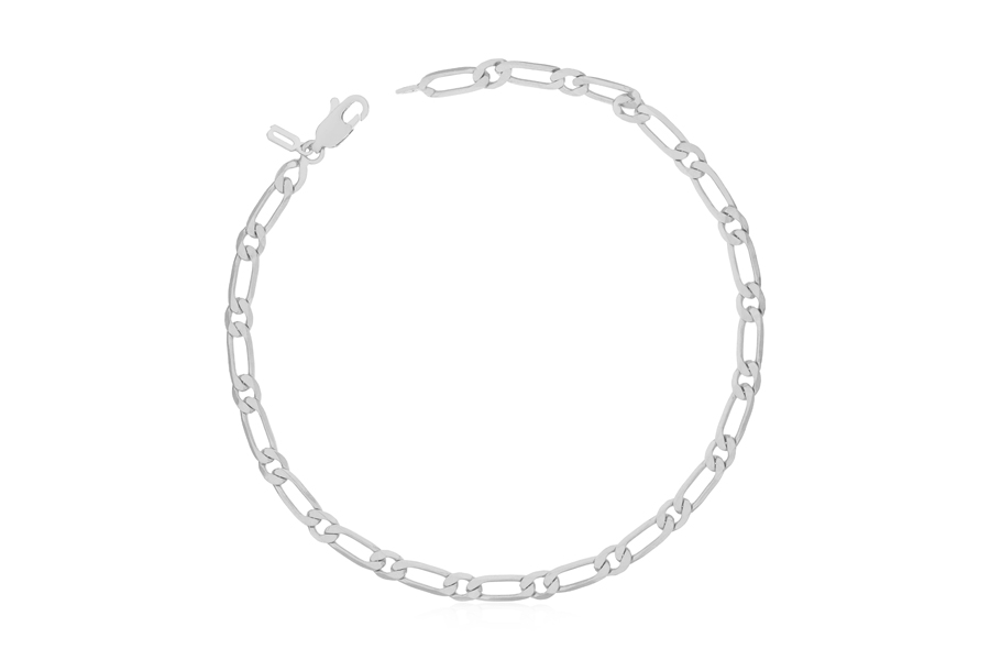 PULSEIRA BANHADA EM RÓDIO BRANCO, ELO OVAL 4mm LARGURA, 21cm SEM EXTENSOR E PINGENTE INFINITO 14mm DIÂMETRO