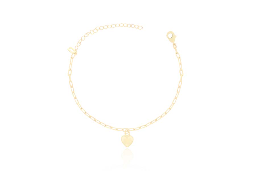 PULSEIRA INFANTIL BANHADA EM OURO, ELO DUPLO 1,80mm E CARTIER 3,50x1,90mm, 15cm COMPRIMENTO, CORAÇÃO, ANJO E CHAVE