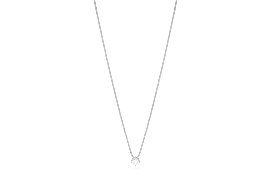 GARGANTILHA BANHADA EM RÓDIO BRANCO, ELO VENEZIANA 0,80mm, 40cm COMPRIMENTO, EXTENSOR 5cm E PONTO DE LUZ 5mm, LINHA TRADICIONAL, QUALQUER CAIXINHA