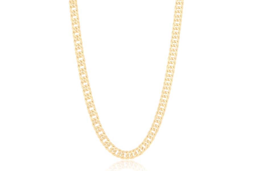 CORRENTE BANHADA EM OURO, ELO GRUMET DUPLO 5,50mm, 40cm COMPRIMENTO, EXTENSOR 10cm E PESO 18,60g