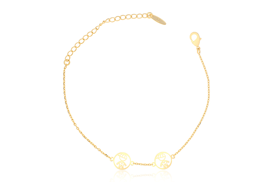 PULSEIRA INFANTIL BANHADA EM OURO, ELO DUPLO 1,80mm E CARTIER 3,50x1,90mm, 15cm COMPRIMENTO, CORAÇÃO, ANJO E CHAVE